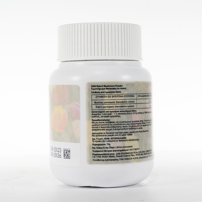 Το Reishi Mushroom Powder αντιπροσωπεύει ένα εκχύλισμα υψηλής ποιότητας Ganoderma lucidum. Είναι ένα από τα κορυφαία προϊόντα της DXN.